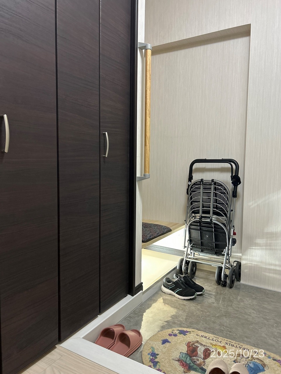 歩く時には、やはり何か補助的なものが必要で、とくにトイレの立ち上がりや、玄関で靴を履く際、